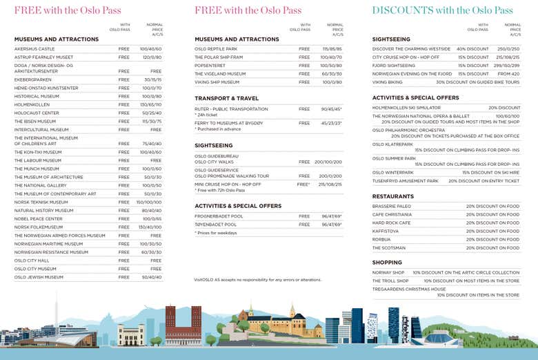 With the Oslo Pass, you can enter the majority of major attractions around the city for free and use public transport as many times as you like (metro, tram and buses) during the card's time of validity.